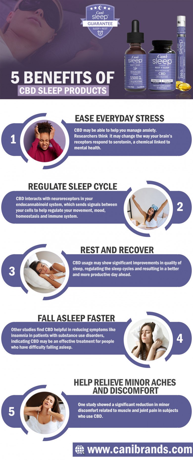 Quality sleep is essential for our immune system, well-being, and overall health. Cani-Sleep CBD sleep products function as a powerful natural sleep aid to help you relax and unwind at night. Combined with melatonin and herbs like chamomile and hops, Cani-Sleep is ideal for treating sleep deprivation.